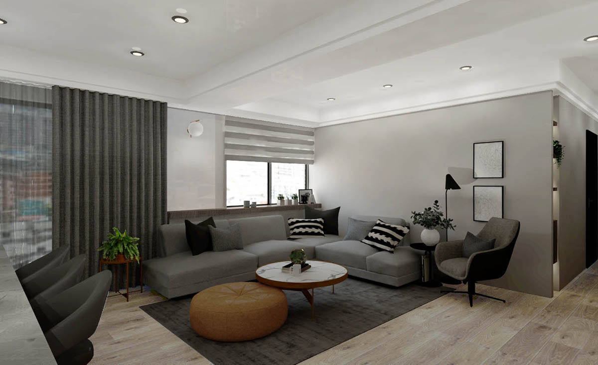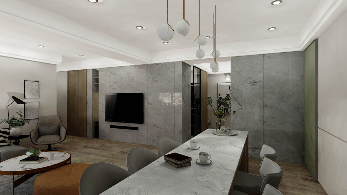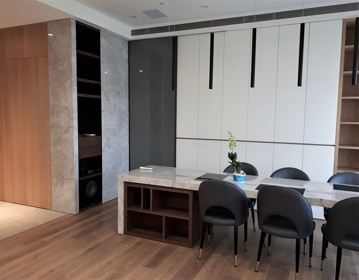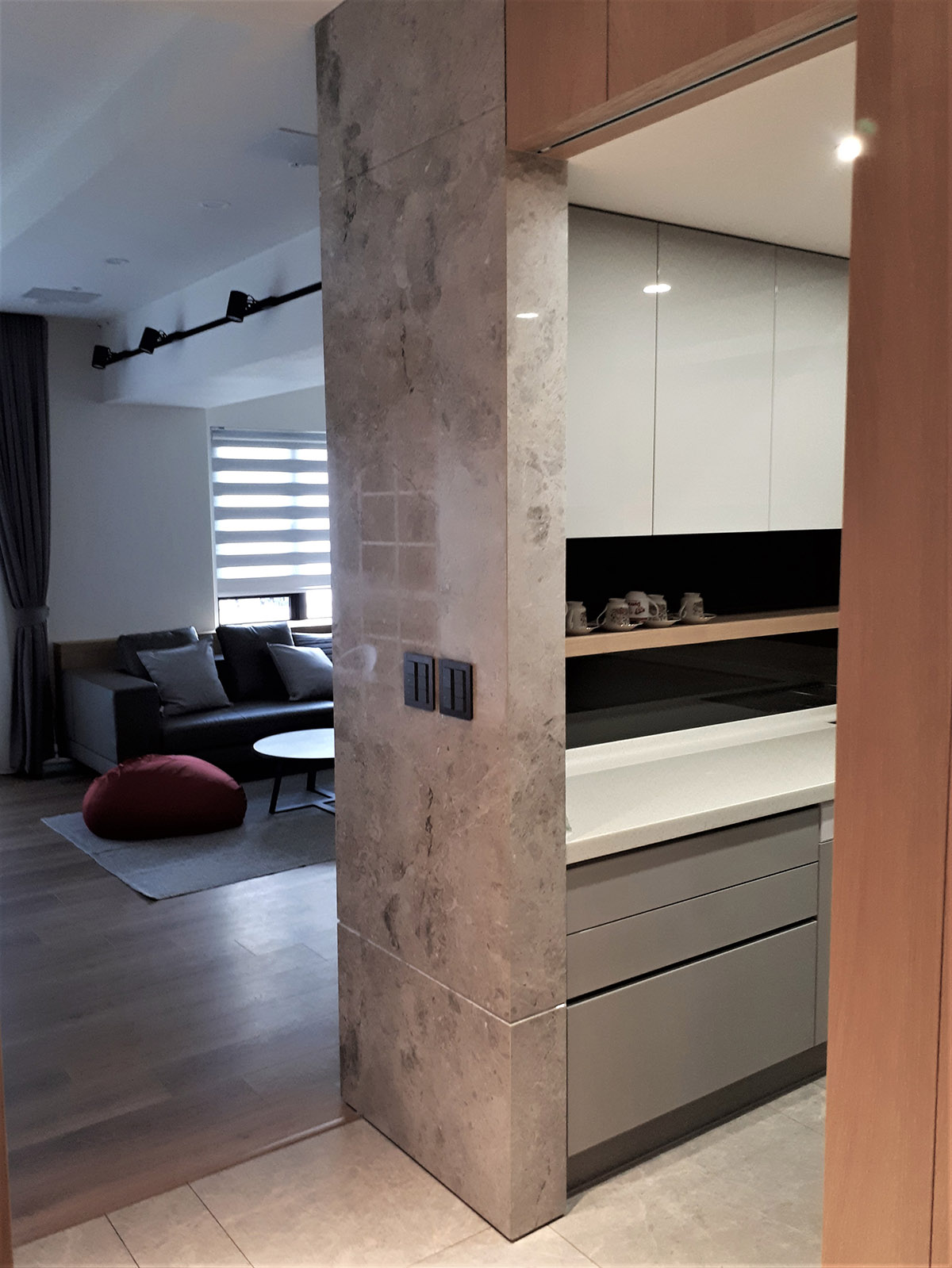 以大地色為基調,佐以多元材質與紋理來堆疊出空間的層次,