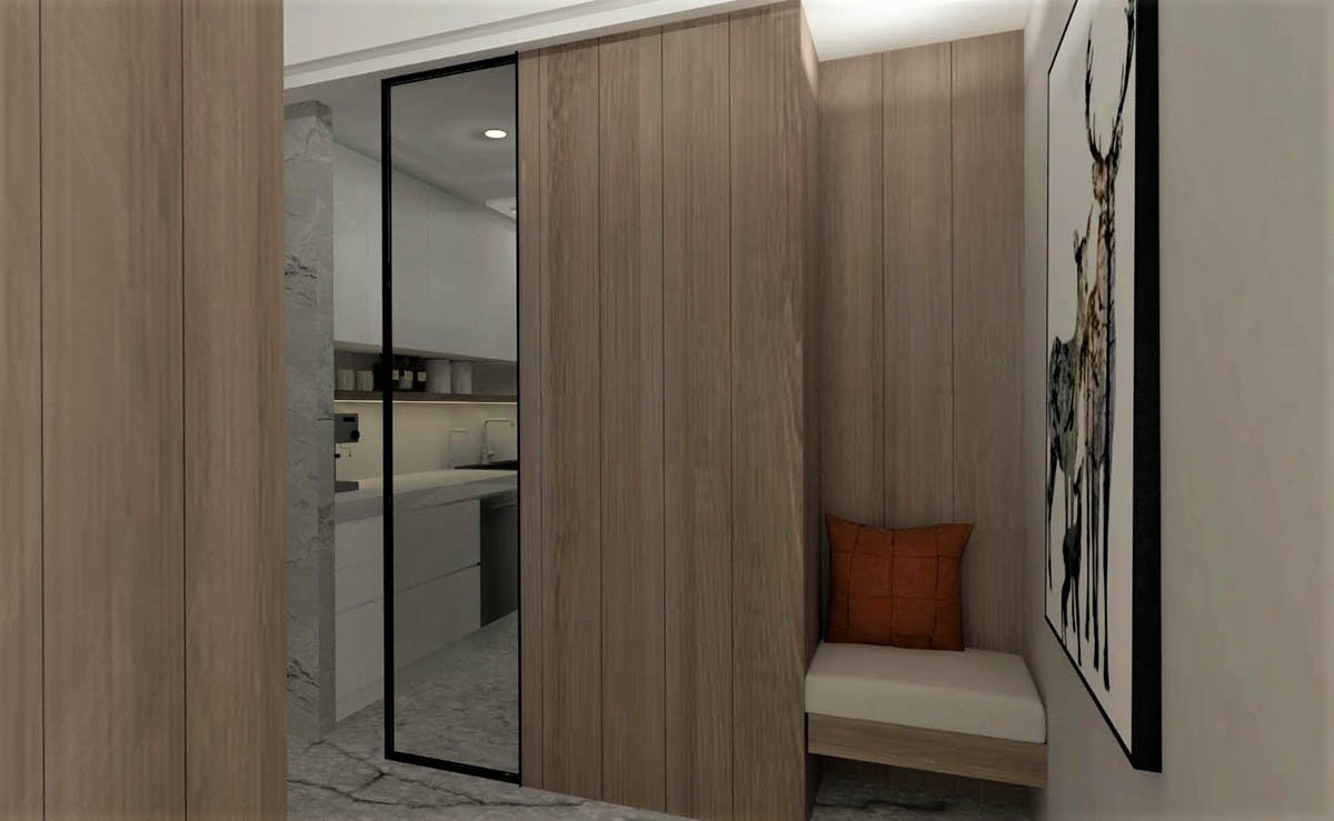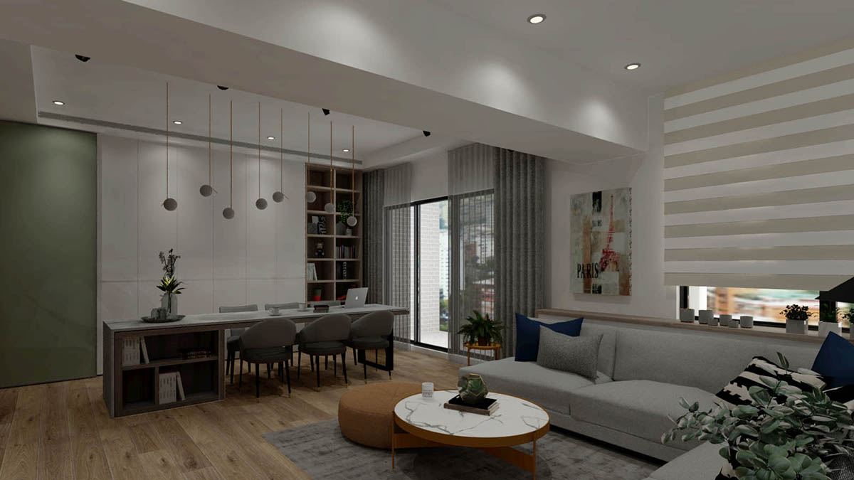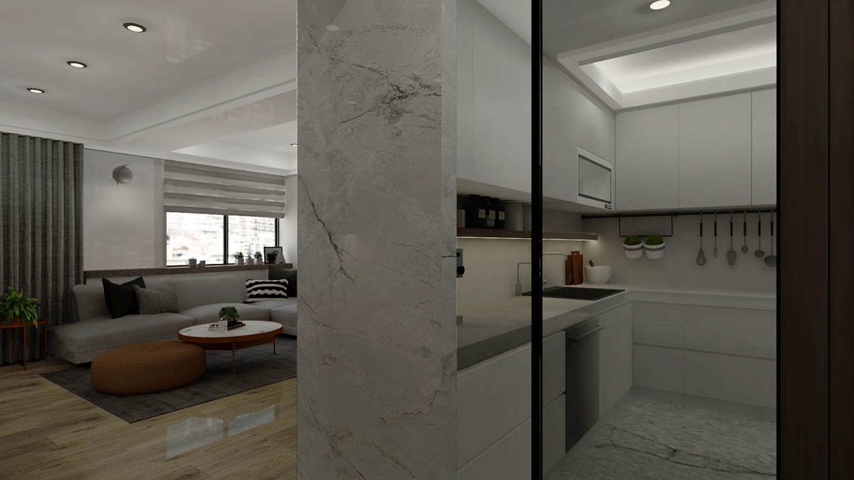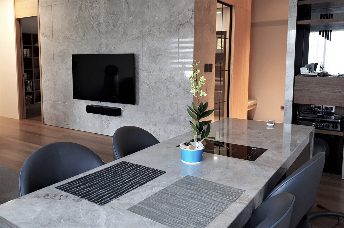 以大地色為基調,佐以多元材質與紋理來堆疊出空間的層次,