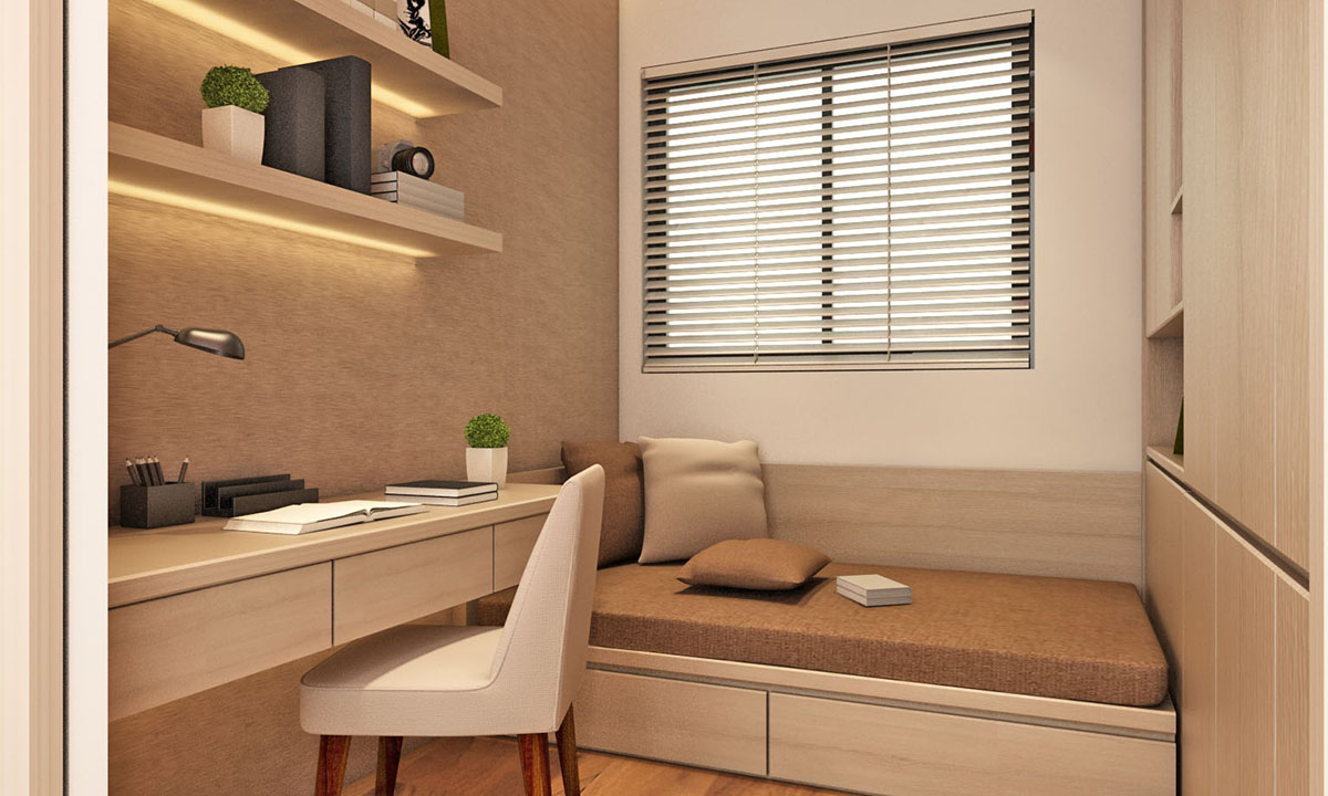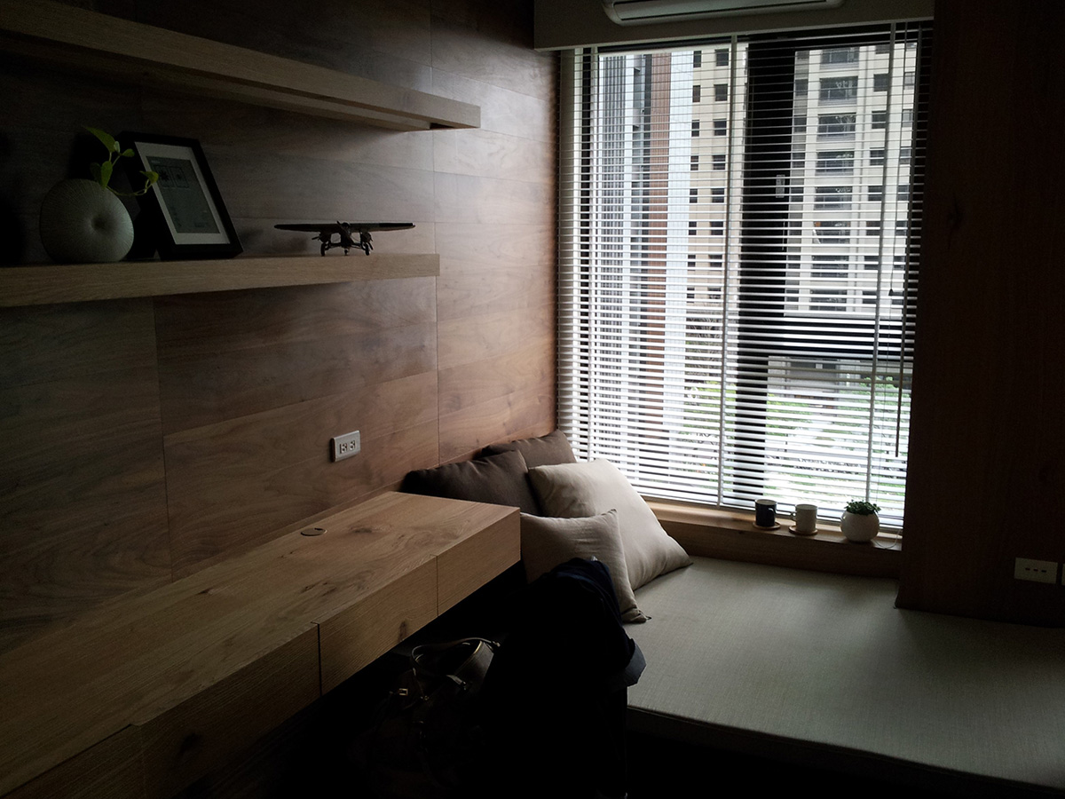 低櫃交錯臥榻,臥榻延伸書房,自由的迴旋空間,流暢而自在……