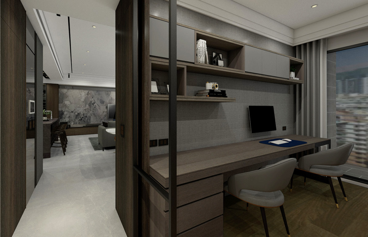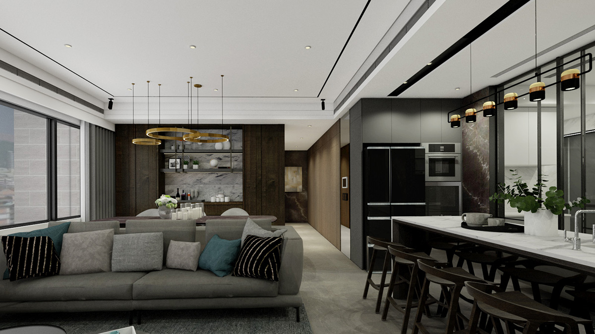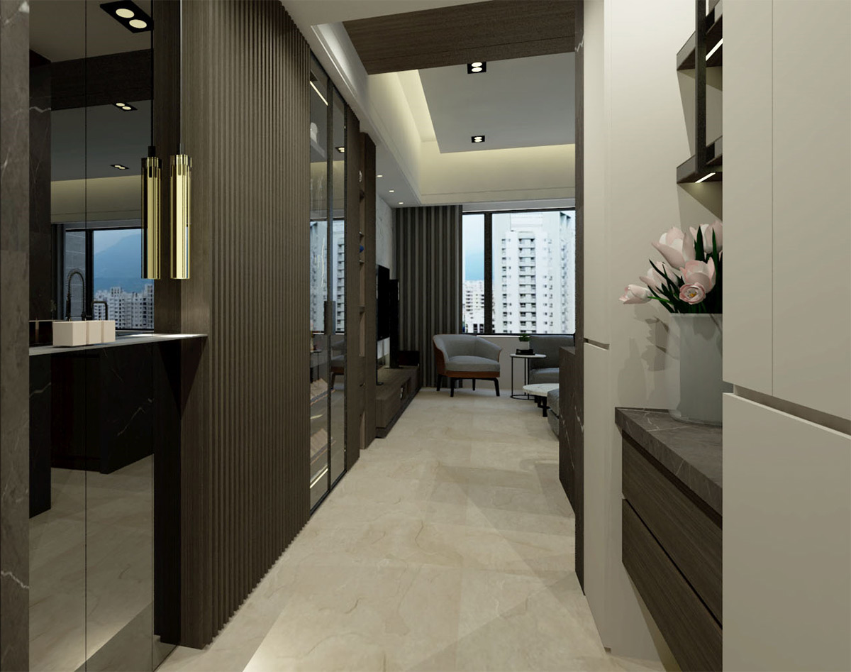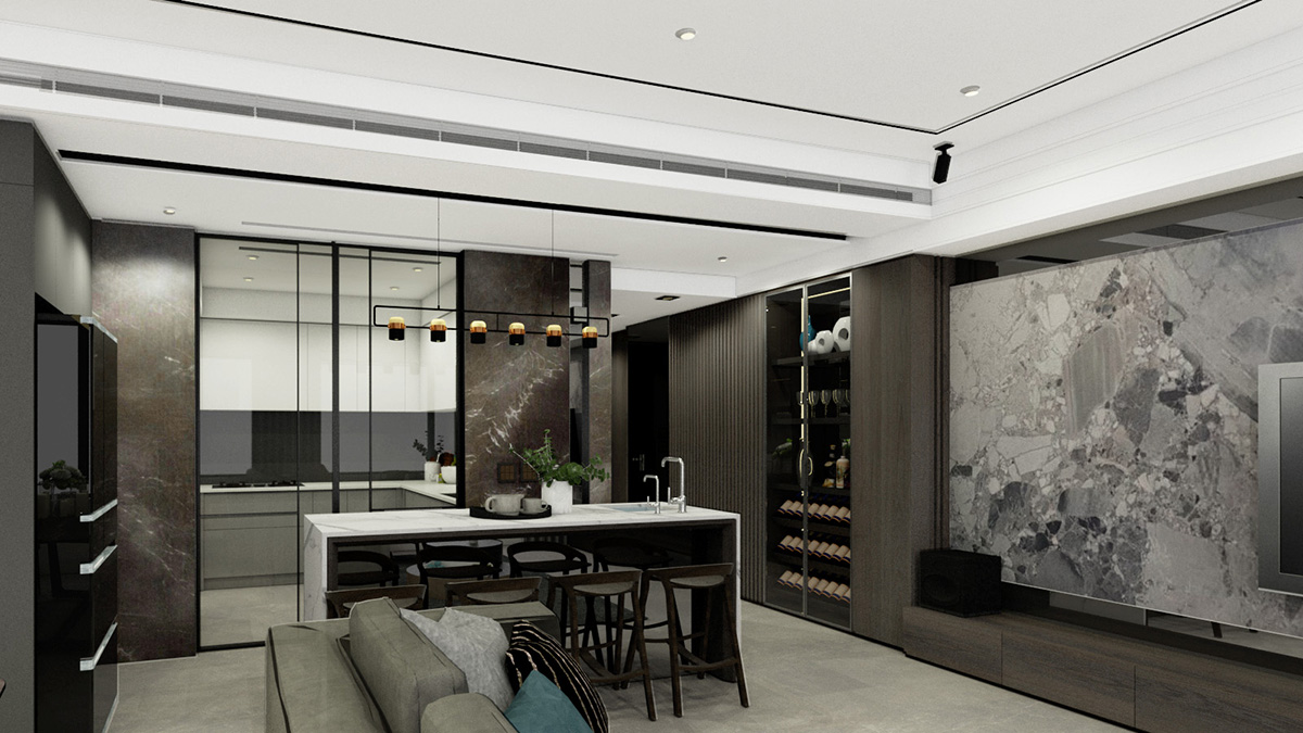 灰階色調中一抹鈦金,無喧囂,郤不失意境,讓空間並存精緻與人文,引申出主人家的生活美學